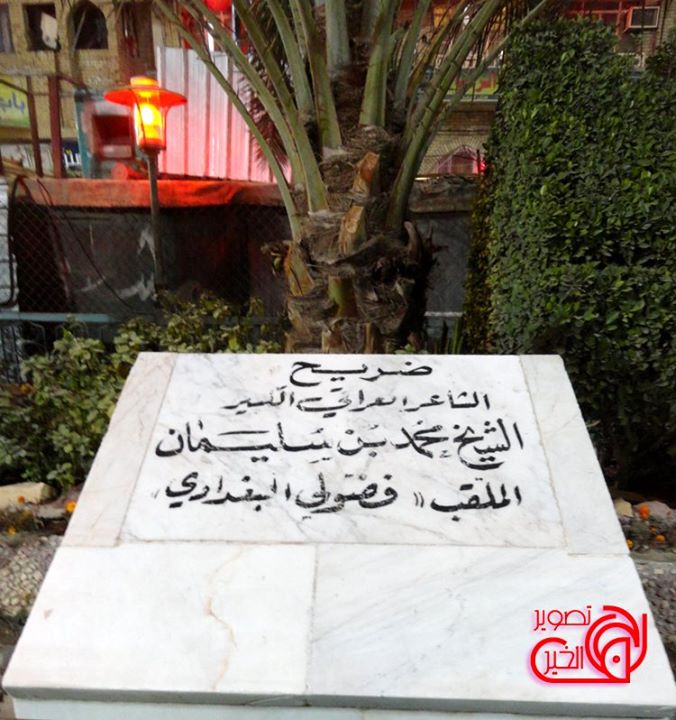 فضولینین مزاری کربلادادیر. بو شکیل اونون مزارینین شکیلیدیر. اما رحمتلیک محقق و فضولی شناس شهید دوکتور محمد مهدی بیاتین او زامان فیس بوک صحیفهسینده یازدیغینا گؤره بو داش او زامان یوخا چیخدی. سونرالار عیراقلی دوستلاریمدان ائشیتدیم حرمین توسعه طرحینده داشی گؤتوروبلر، سونرا یئنه یئرینه قایتاراجاقلار. ایندی بیلمیرم مسئله هارا چاتیبدیر. کربلا یادیما دوشنده هردن فضولی ده یادیما دوشر. آشاغیدا رحمتلیک شهید بیاتین آچیقلاماسانی دا گتیرمیشم.